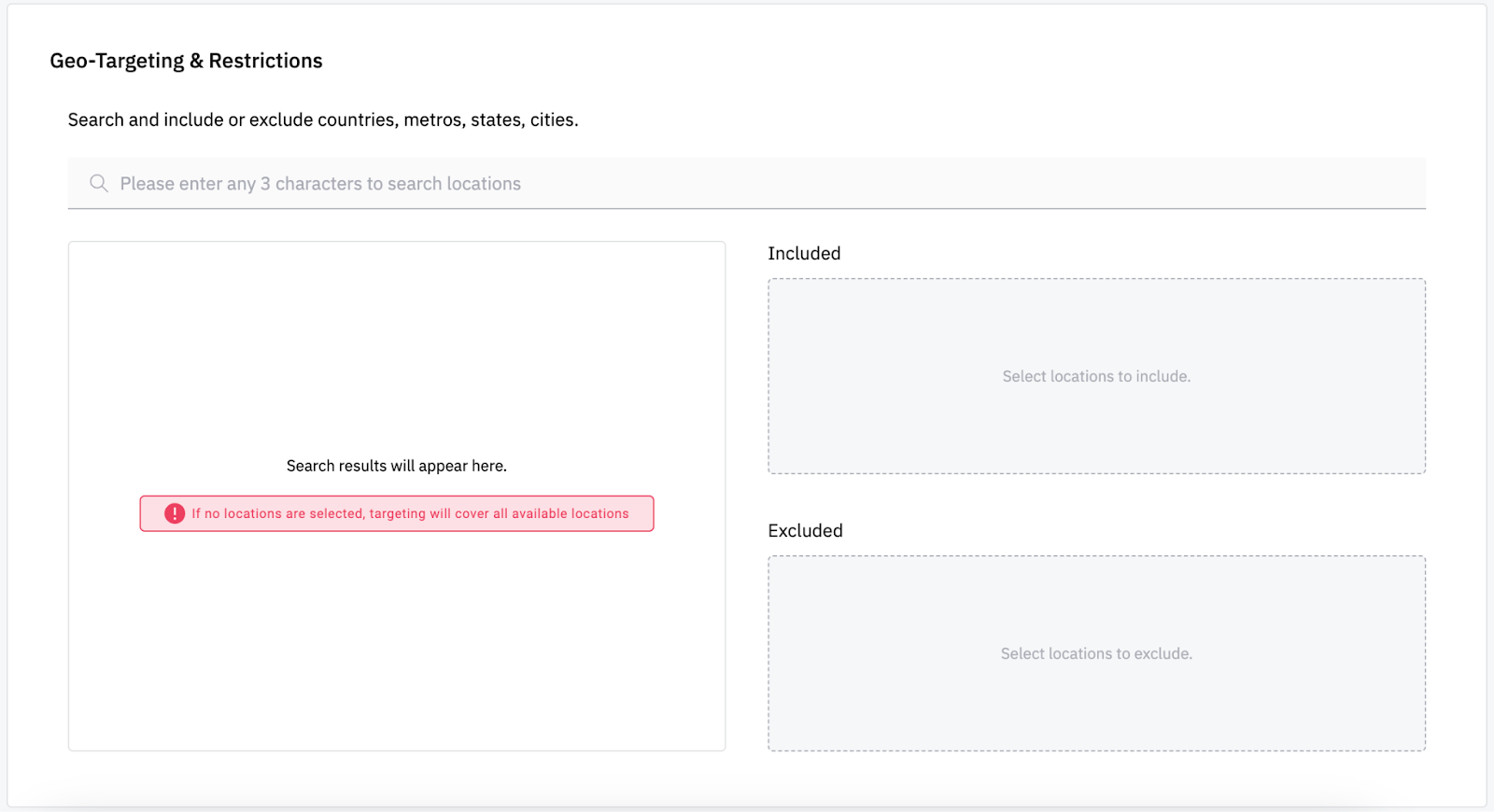2. Geo-Targeting & Restrictions Details (optional step):